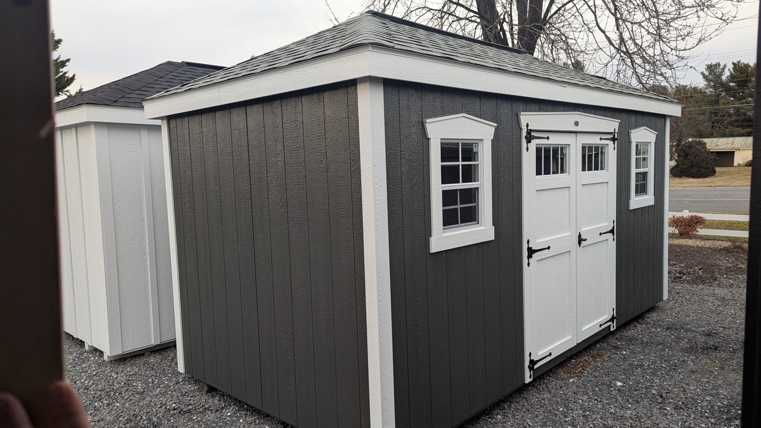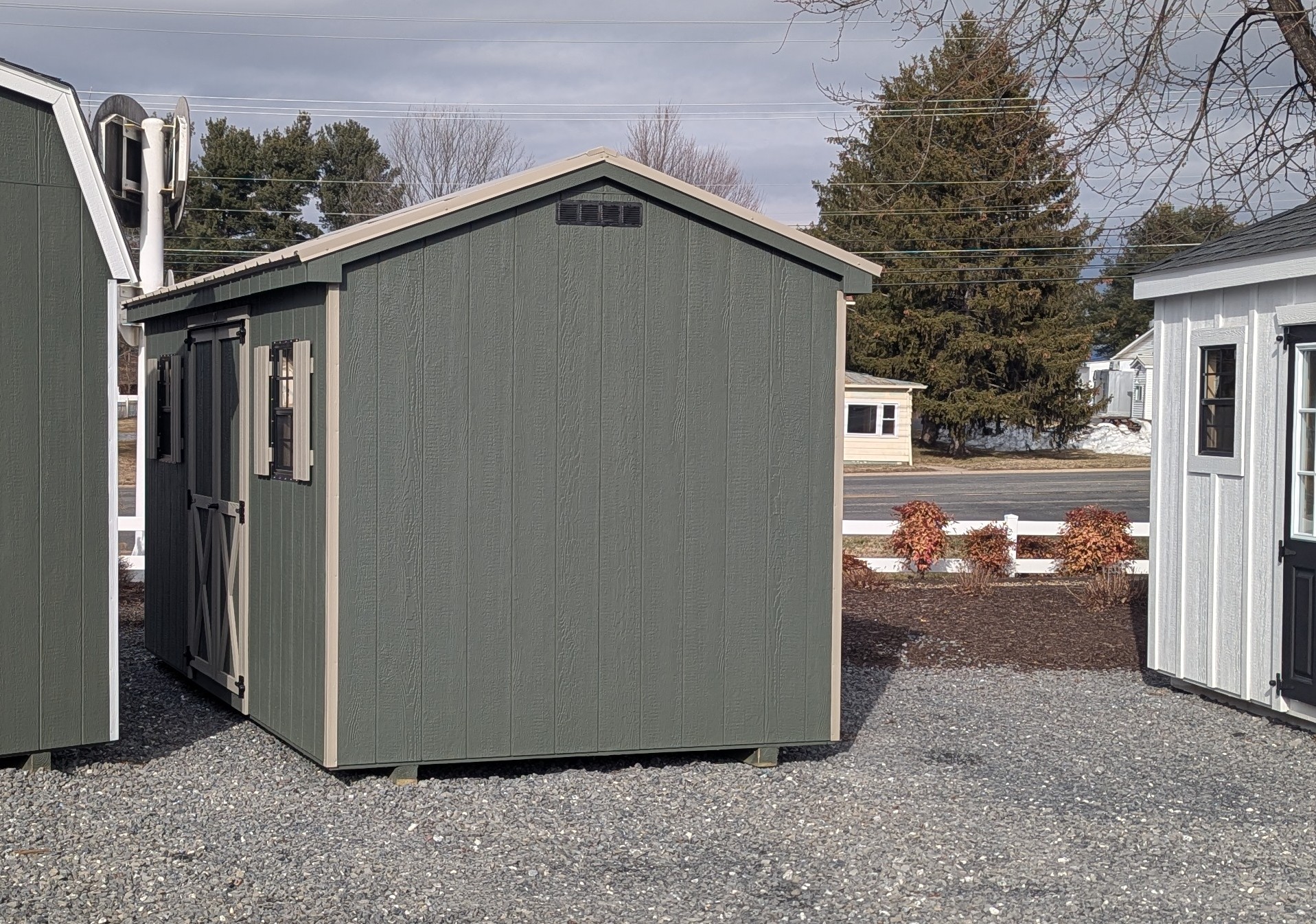 Gable vents, skylight, 4' loft, shelves, shutters, window trim, wider double door upgrade